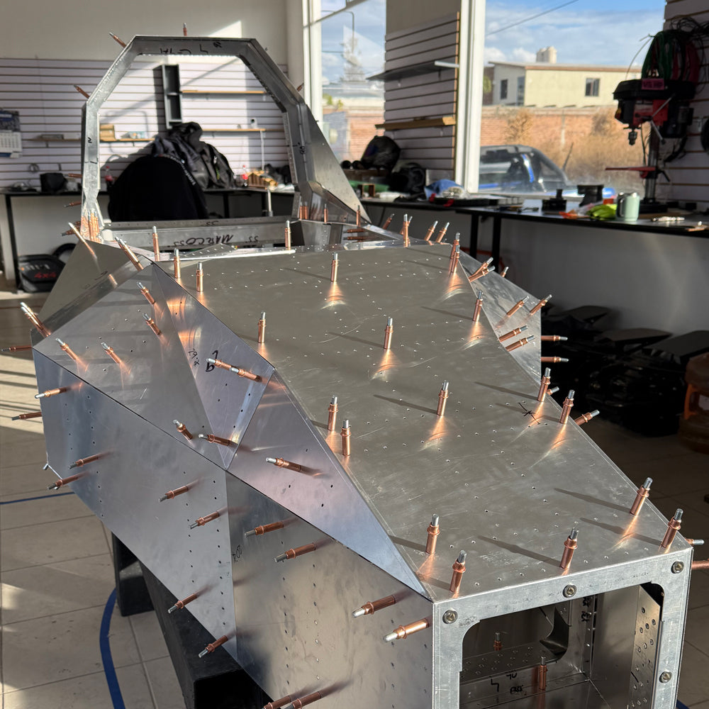 El VKN1 destaca por su estructura Semi Monocasco, una solución técnica ampliamente probada en la industria aeroespacial que equilibra resistencia, eficiencia y versatilidad. Esta configuración combina una piel estructural (chapa) con elementos internos como cuadernas y largueros, permitiendo una construcción robusta, funcional y optimizada.